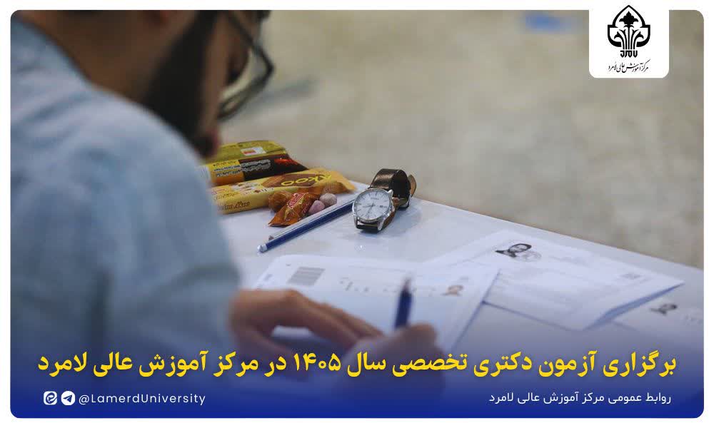 به گزارش روابط عمومی مرکز آموزش عالی لامرد، آزمون ورودی مقطع دکتری تخصصی سال ۱۴۰۵ همزمان با سراسر کشور، روز جمعه ۲۴ بهمنماه در مرکز آموزش عالی لامرد برگزار خواهد شد.