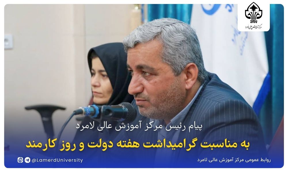 اینجانب ضمن گرامیداشت یاد و خاطره شهیدان رجایی و باهنر و عرض تسلیت ایام شهادت حضرت اباعبدالله الحسین (ع)، فرارسیدن «روز کارمند» را به همه کارکنان متعهّد نظام آموزش عالی کشور، به‌ویژه کارمندان شریف، خدوم و دلسوز مرکز آموزش عالی لامرد، صمیمانه تبریک عرض می‌نمایم. امید است همگی با تأسی از سیره شهیدان والامقام، در مسیر تحقق آرمان‌های انقلاب اسلامی و فرمایشات مقام معظم رهبری (مدّظله‌العالی)، سربلندی ایران عزیز را رقم بزنیم.